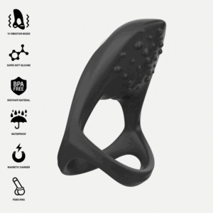 Fabricado con silicona médica de alta calidad y ABS, el anillo Ibiza ofrece una textura ultrasuave, elástica y segura para el cuerpo, garantizando una experiencia cómoda y placentera. Su diseño ajustado ayuda a mantener la erección por más tiempo, mientras las vibraciones estimulan intensamente las zonas más sensibles. Con 10 modos de vibración, podrás elegir entre distintos ritmos e intensidades para personalizar la experiencia a tu gusto. Desde vibraciones suaves hasta pulsaciones intensas, te permite explorar el placer de forma progresiva y controlada.