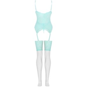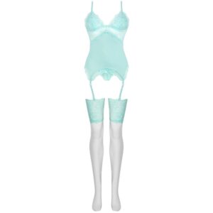 La colección Persinne Mint Emporio es un lujoso conjunto de ropa de dormir de tres piezas que contiene un corsé de tela de encaje, tangas de encaje y medias con cinturón. Se trata de la combinación perfecta pensada tanto para ocasiones especiales como para el día a día, que sin duda no debe faltar en el armario de toda mujer.
