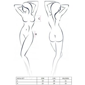 El set de la colección Sayla es un fabuloso conjunto de lencería de diseño espectacularmente sexy con el que te convertirás en una bomba de seducción, fabricado por la prestigiosa marca de lencería Passion