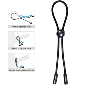 El bucle para el pene está controlado por una perla sintética para que pueda colocarse sobre el pene y los testículos. Puedes ajustar individualmente el diámetro al tamaño del pene. De esta manera, la intensidad del efecto de restricción del flujo sanguíneo se puede ajustar según los deseos personales.