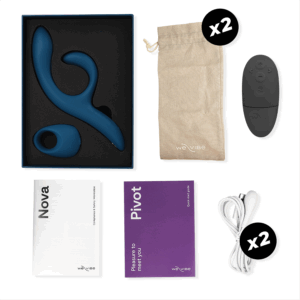 Es un momento, una noche o un fin de semana de placer orgásmico en una hermosa caja de regalo. Diseñado para mejorar la intimidad y el juego en pareja para parejas, Nova 2 brinda orgasmos combinados mientras que Pivot mejora y prolonga las erecciones para una cita nocturna que realmente dura toda la noche.